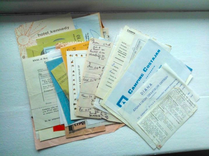 This is a photo of some bits and pieces from an epic journey she made in 1968. She booked a first-class ticket on the Oronsay, cruising the P&O line from Vancouver to Southampton via the Panama Canal. Bought a car in Marseilles and spent the next couple of years staying in youth hostels and campgrounds and visiting friends in Portugal, Spain, Greece, and Italy. She even travelled solo to Morocco.